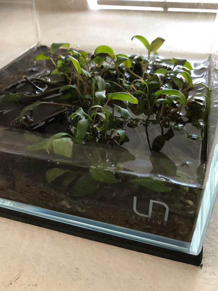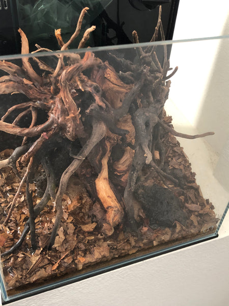 You’d set whatever “hardscape” you want- driftwood, etc. in place. Of course, you’d have to water your little forest floor for some period of time, allowing the vegetation to sprout and grow. Based on the many times of played with the “Igapo” idea, this process typically takes around 2-3 months to establish the growth well.