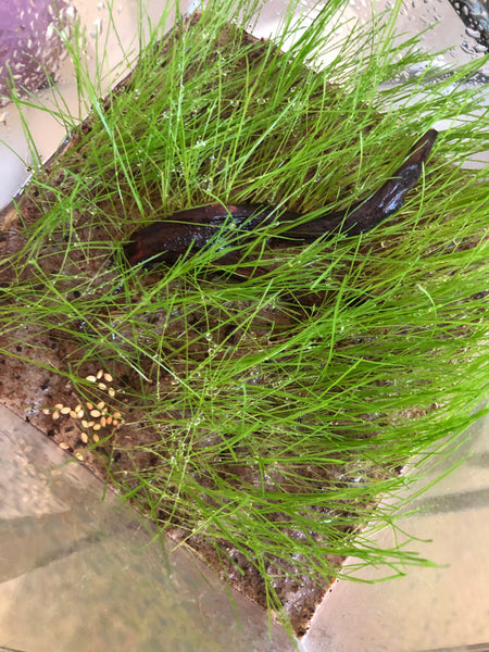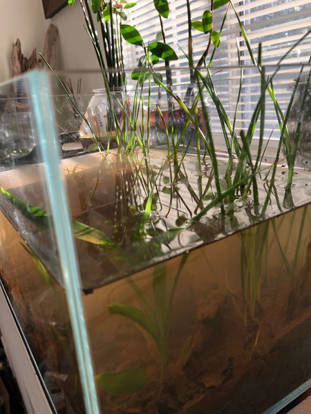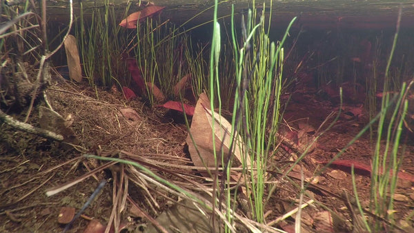So, the way this would work for us is to simply set up the tank like our “standard” approach to creating an “Urban Igapo”- utilizing a sedimented substrate to create a “forest floor.” And then, you add leaves, botanicals, and perhaps, some terrestrial grass seeds, and even riparian plants.