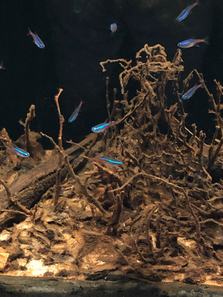 The interesting thing about this approach is that you will see a tank which “cycles” extremely quickly, in my experience. In fact, I’ve done many iterations of “Urban Igapo” tanks where there was no detectible “cycle” in the traditional sense. I don’t have an explanation for this, except to postulate that the abundance of bacterial and microorganism growth, and other life forms, like fungal growths, etc., powered by the nutrients available to them in the established terrestrial substrate expedites this process dramatically.
