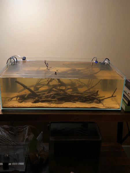 Substrate: CaribSea “Sunset Gold” sand, Tannin NatureBase “Varzea” sedimented substrate (Substrate materials were mixed together to create a substrate layer approximately 1/4″-1/2″ inch (.635- 1.27cm) deep ).