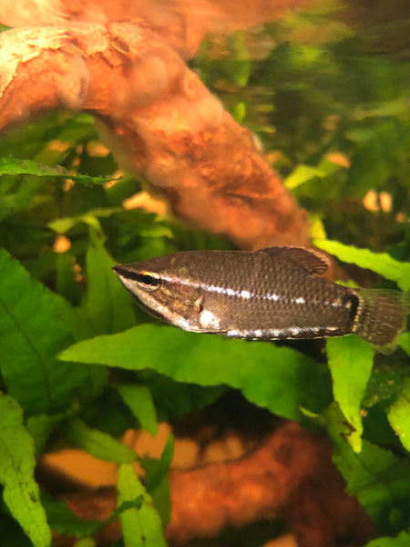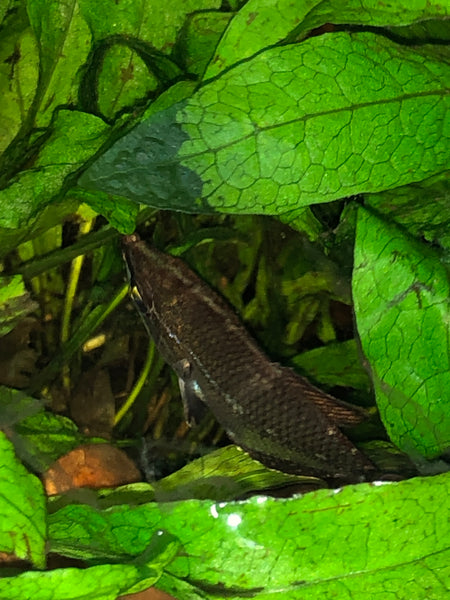 The inhabitants had to be a species of Rasbora, (R. hengeli) and one of my long-coveted fishes, Vaillant’s Chocolate Gourami”, Sphaerichthys vaillanti. This fish is an idea candidate for such a tank. Not only is the tank reasonably small, so I could actually see this shy fish now and again- it has deeply tinted water, and is further darkened with the thick matrix of branches and dense aquatic vegetation- a perfect representation of their wild habitat!